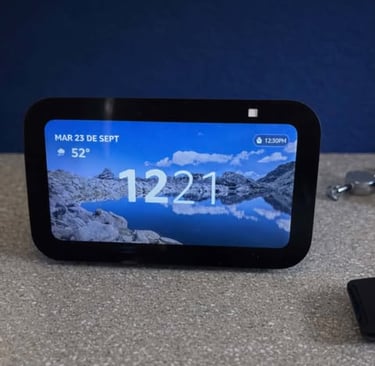 Made by Amazon, this Echo Show 5 smart display features a compact screen, upgraded speakers, and Alexa controls for video, music, routines, and home management. This offers clear visuals and hands-free convenience by combining entertainment, smart home control, and quick information into one bedside or countertop device.