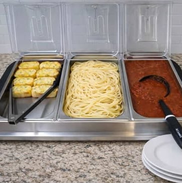 Made by Proctor Silex, this buffet server includes three 2.5-quart oven-safe chafing dishes with adjustable heat settings for parties and gatherings. This keeps food warm and ready to serve by offering stainless steel warming trays designed for holidays and entertaining.