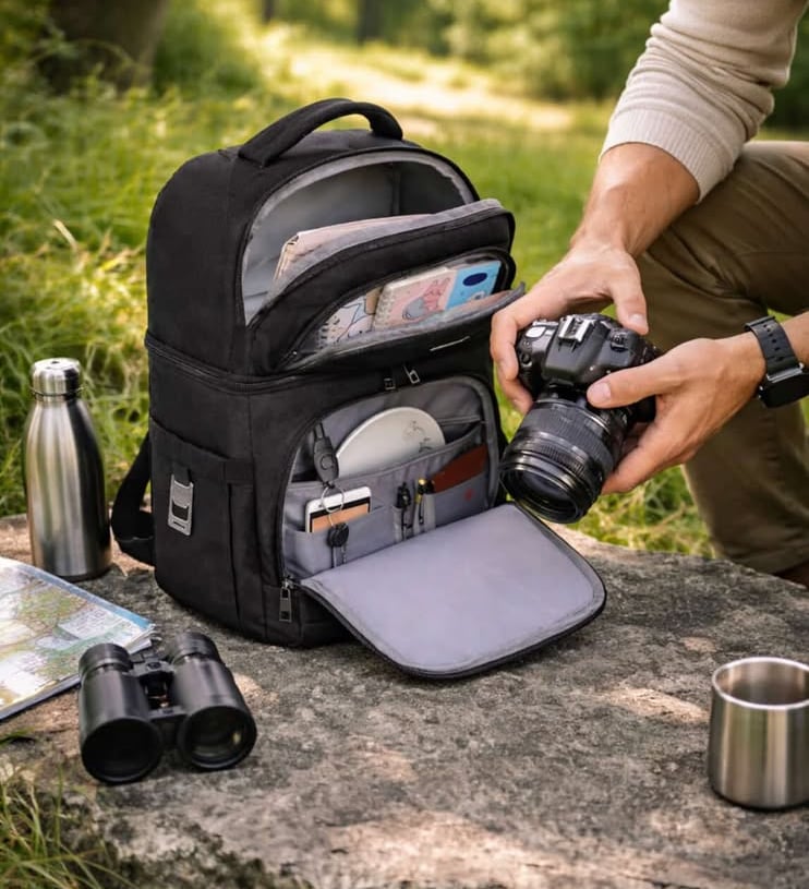 Made by Cooler Backpack, this insulated double-deck cooler bag features leakproof lining, multiple compartments, and RFID protection for daily or outdoor use. This keeps food and drinks cold while offering organized storage for picnics, work lunches, travel, or hiking.
