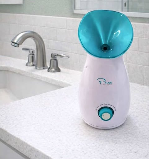 Experience spa quality skincare at home with the Pure Daily Care NanoSteamer. This 3 in 1 facial steamer uses nano ionic steam with precise temperature control to cleanse pores and remove blackheads. It also works as a humidifier and includes a five piece stainless steel skin care kit for a complete facial experience.
